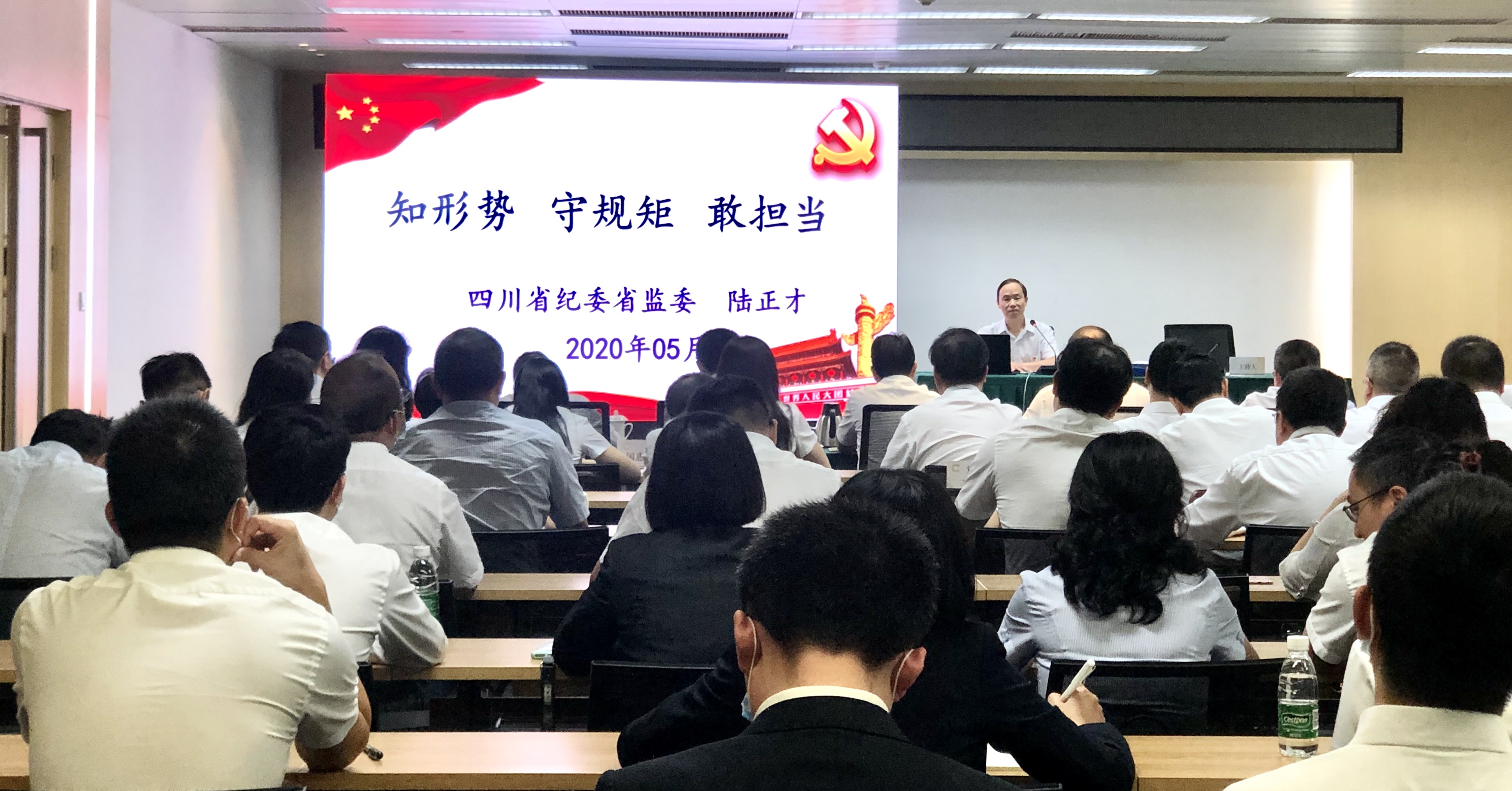 下午,金控集團(tuán)特邀四川省紀(jì)委監(jiān)委案件審理室副廳長(zhǎng)級(jí)主任,駐四川港投集團(tuán)紀(jì)檢監(jiān)察組組長(zhǎng),港投集團(tuán)黨委委員、紀(jì)委書記陸正才同志在集團(tuán)5樓會(huì)議室做了《知形勢(shì)、守規(guī)矩、敢擔(dān)當(dāng)》預(yù)防職務(wù)犯罪專題講座,陸正才針對(duì)當(dāng)前社會(huì)反腐形勢(shì),結(jié)合一個(gè)個(gè)典型案例,以案釋法、深入淺出,對(duì)職務(wù)犯罪的概念、基本特征、表現(xiàn)形勢(shì)、產(chǎn)生原因、危害性后果及如何預(yù)防進(jìn)行了充分闡述,為廣大干部職工敲響警鐘的同時(shí),也筑牢了反腐倡廉的思想防線。